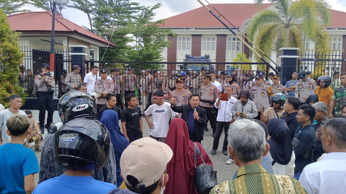 Aksi Damai Masyarakat Rambah Tengah Hulu Tuntut Keadilan di PN Pasir Pengaraian