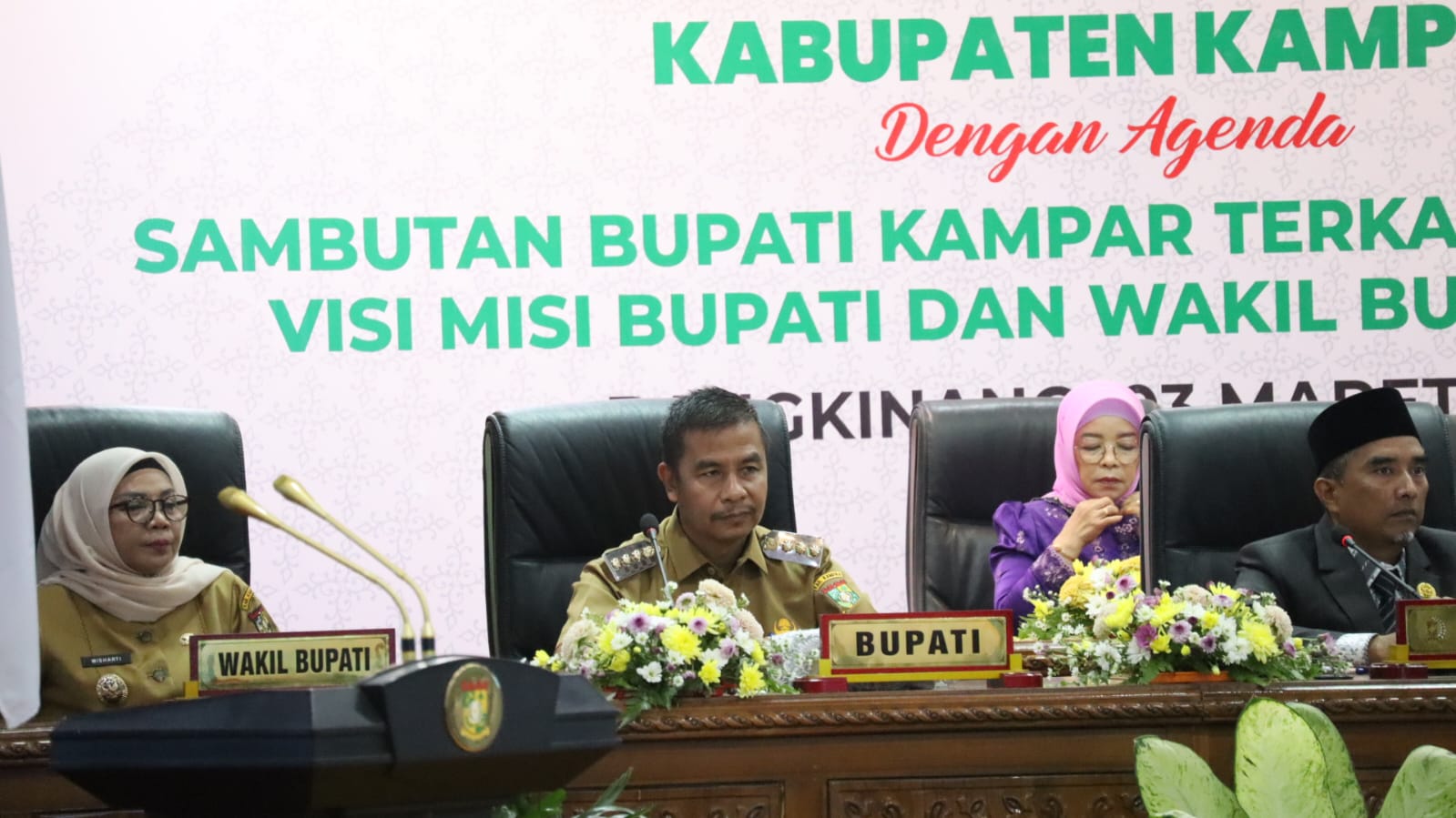 Kampar____Dalam Rapat Paripurna DPRD Kabupaten Kampar yang digelar di Ruang Rapat Paripurna Lantai II DPRD, Bupati Kampar Ahmad Yuzar, S.Sos, M.T. dan Wakil Bupati Kampar Dr. Hj. Misharti, S.Ag, M.Si secara resmi menyampaikan visi dan misi kepemimpinan mereka untuk periode 2025-2030.