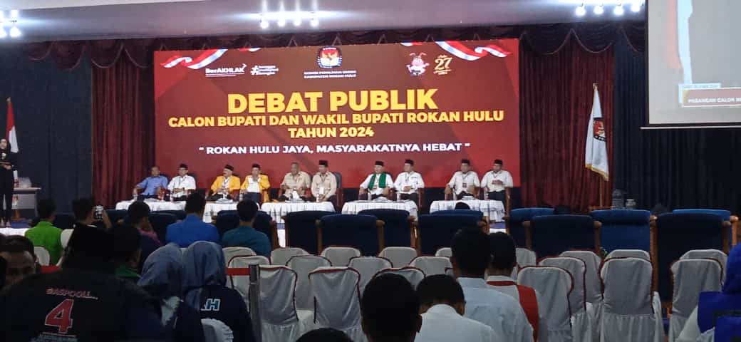 Dalam acara debat publik calon Bupati dan wakil Bupati Rohul 2024 yang berlangsung di Islamic Centre