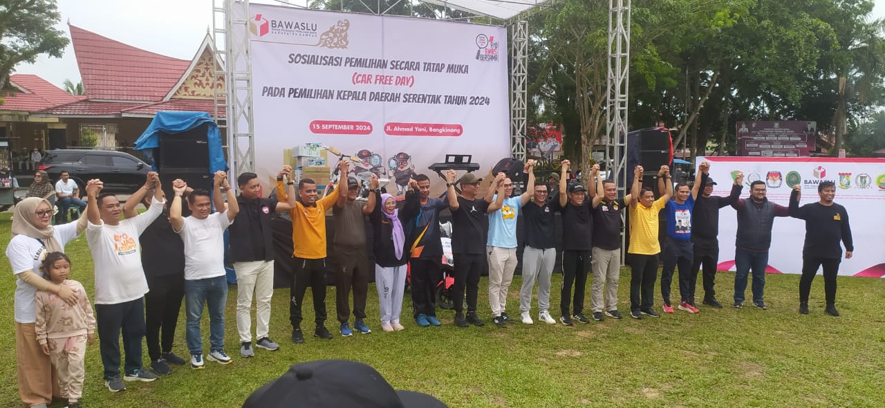 Kampar_____PJ Bupati Kampar Hambali, bersama Seluruh jajaran Forkopimda Hadiri acara Sosialisasi pemilihan secara tatap muka sekaligus “Car Free Day” pada Pilkada serentak tahun 2024 yang dilaksanakan oleh Bawaslu Kabupaten Kampar dilapangan pelajar Minggu 15/9/2024.