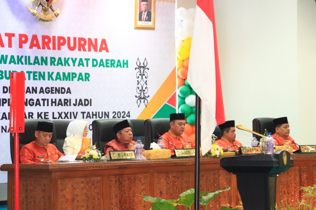 Bangkinang Kota _____Dewan Perwakilan Rakyat Daerah (DPRD) Kabupaten Kampar menggelar Rapat Paripurna Istimewa Hari Jadi Kampar Ke-74 Tahun 2024 yang diperingati setiap Tanggal 6 Februari setiap tahunnya, dan tahun ini mengangkat tema “Kampar Semakin Melaju, Menuju Indonesia Emas 2045”.
