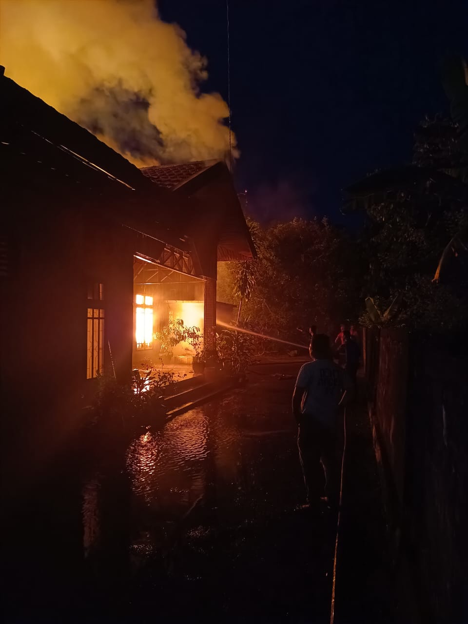 Bangkinang Kota___ Sebuah rumah permanen milik warga bernama Fikho Yolanda (43) di Jalan Ahmad Yani No. 37 A, Kelurahan Bangkinang Kota, Kecamatan Bangkinang, Kabupaten Kampar, dilalap si jago merah pada Jumat malam.