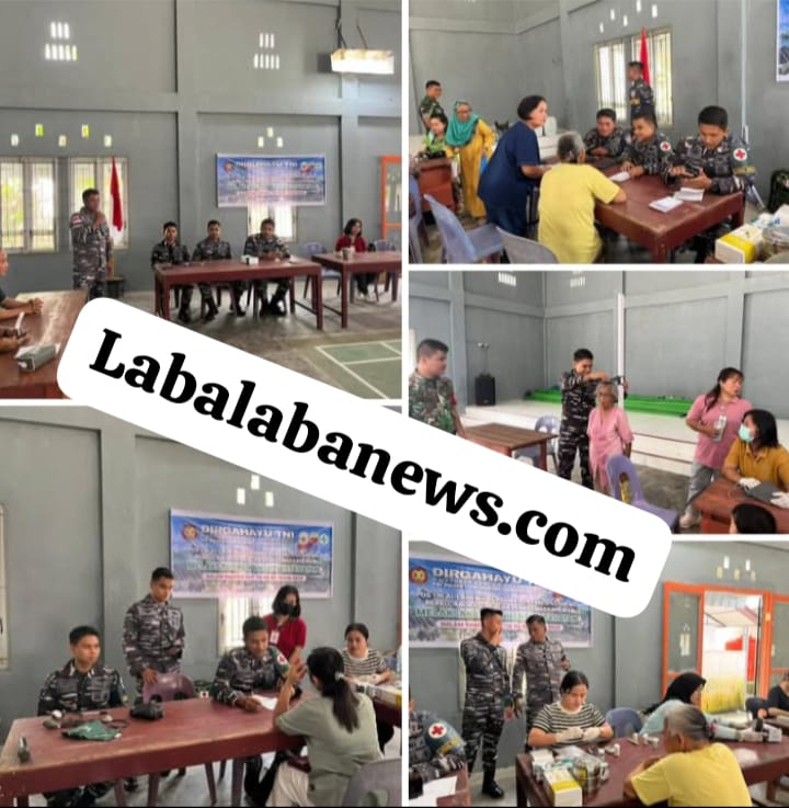 Awak media Labalabanews.com saat melihat dilokasi Kegiatan berjalan dengan aman dan lancar, dengan tahapan meliputi pendaftaran administrasi, pengukuran kesehatan, konsultasi, pengecekan darah, dan pemberian obat gratis kepada masyarakat yang membutuhkan, dipimpin oleh Pgs. Danposal Lahewa Lettu Laut (P) Tomi Nurrohman.
