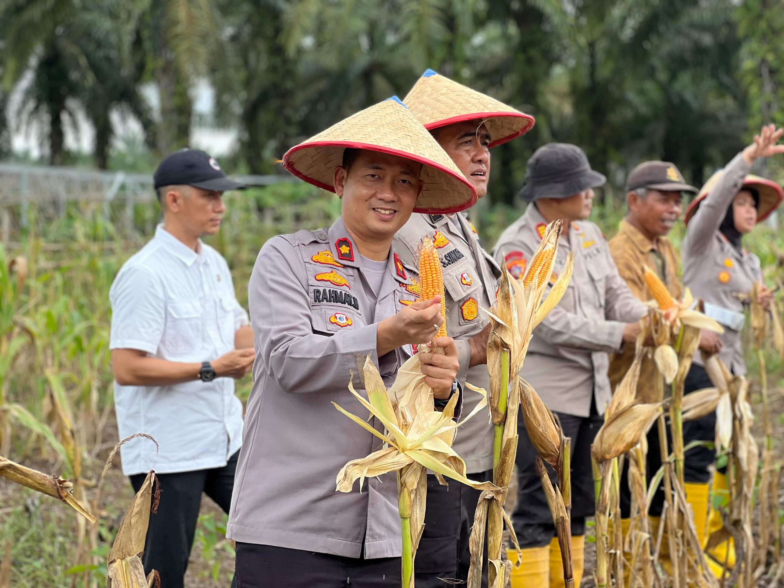 Didukung penuh oleh Kapolri dan Kementerian Pertanian RI, panen jagung ini merupakan bagian dari program strategis penanaman satu juta hektare. Kapolres Rokan Hulu AKBP Budi Setiyono, SIK., MH, hadir langsung bersama jajaran Forkopimda, termasuk Asisten II Pemkab Rokan Hulu Drs. Ibnu Ulya, M.Si, serta Kadis Peternakan dan Perkebunan Agung Nugroho, S.Stp. Masyarakat dan aparat TNI-Polri juga turut serta, menegaskan sinergi semua pihak dalam memperkuat ketahanan pangan.