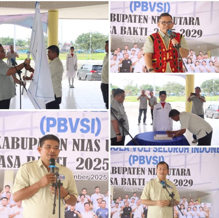 Nias Utara_____ (7 November 2025), Persatuan Bola Voli Seluruh Indonesia (PBVSI) Kabupaten Nias Utara resmi melantik pengurus baru masa bakti 2025-2029 di Tribun Kab. Nias Utara.