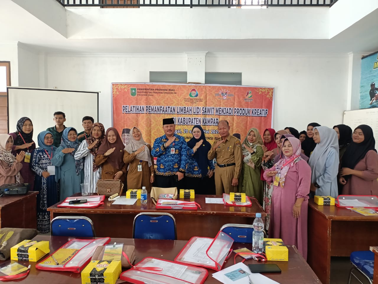 Kampar____Pusat Layanan Usaha Terpadu Koperasi dan Usaha Kecil Menengah(PLUT KUMKM) Dinas Perindustrian, Perdagangan, Koperasi dan UKM Provinsi Riau menggelar Kegiatan Pelatihan Pemanfaatan Limbah Lidi Sawit menjadi Produk Kreatif bagi pelaku UMKM di Kabupaten Kampar, di Aula Kantor PLUT KUMKM Kabupaten Kampar Senin(20/05/2024).