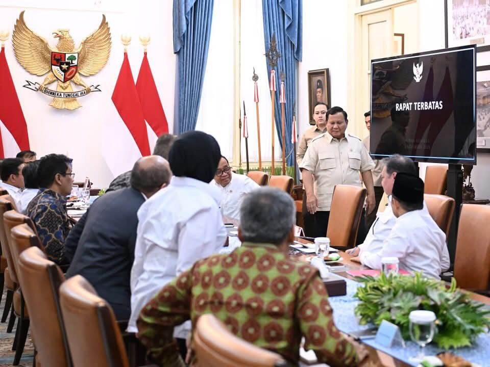 Jakarta _______Presiden Prabowo Subianto menggelar rapat terbatas bersama sejumlah menteri Kabinet Merah Putih di Istana Merdeka, Jakarta, Rabu (05/11/2025). Rapat tersebut membahas langkah-langkah strategis pemerintah dalam upaya mempercepat penanggulangan kemiskinan melalui dua pendekatan utama, yakni pendidikan dan pemberdayaan masyarakat.