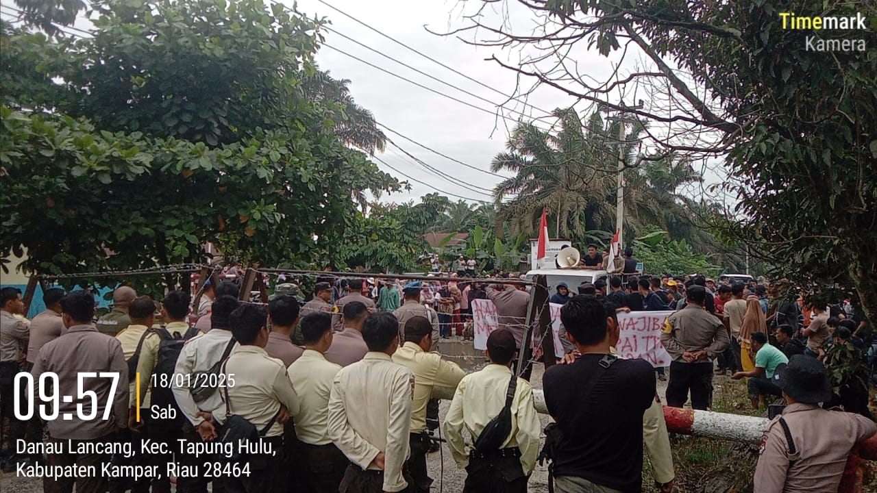 Tapung Hulu___memanas setelah masyarakat dan pemuda Desa Danau Lancang, yang tergabung dalam Gerakan Danau Lancang Bangkit (GEDAB), menggelar aksi unjuk rasa besar-besaran di depan PT. SAM 1 (Surya Dumai Group) pada Sabtu, 18 Januari 2025.