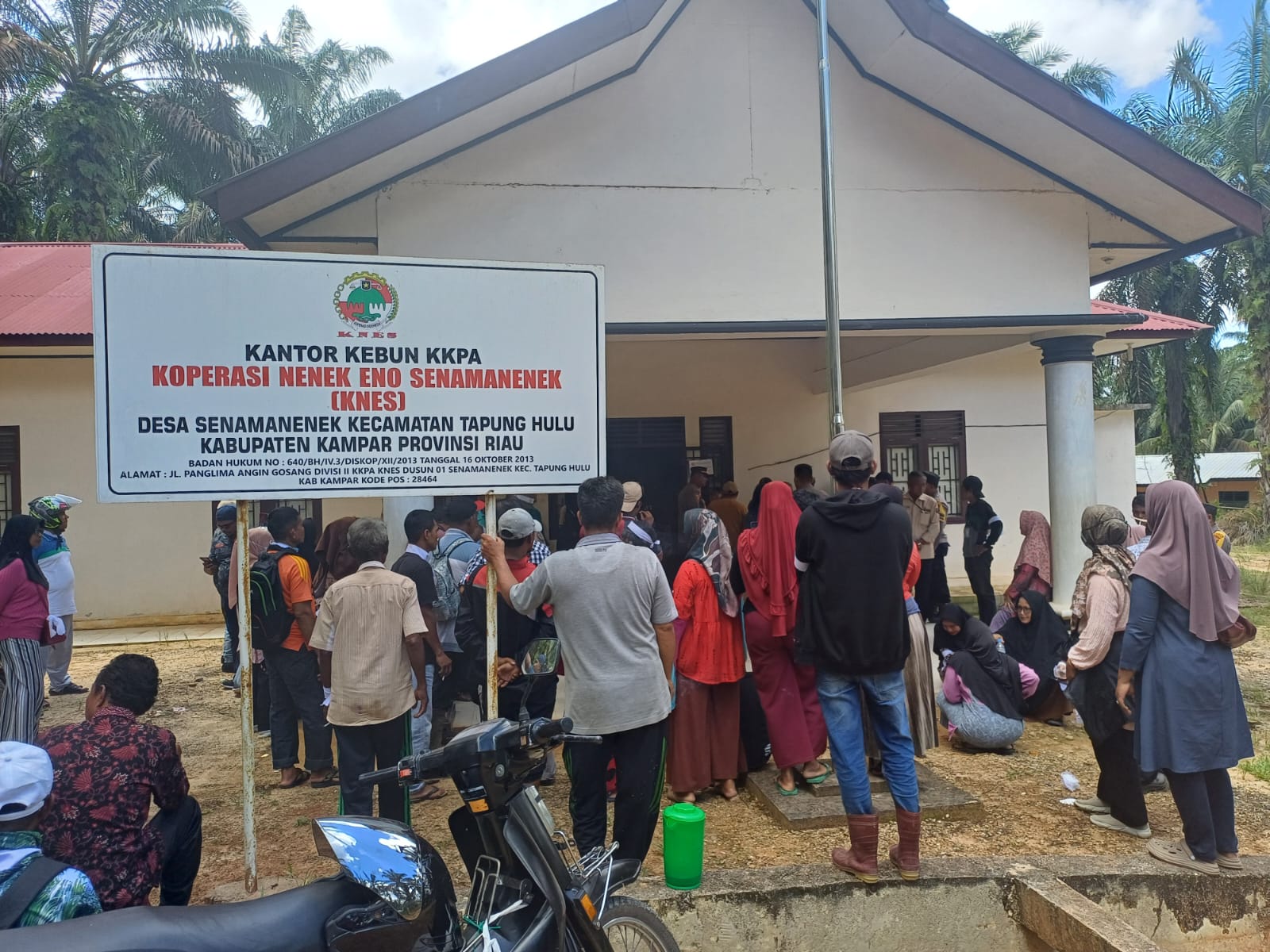 Tapung Hulu___Ratusan warga yang tergabung dalam KOPOSAN (Kelompok Pemilik Sertifikat Hak Milik) dari Desa Senama Nenek, Kecamatan Tapung Hulu, melakukan aksi penghadangan terhadap pihak keamanan PT KNES pada Senin siang (14/4). Aksi ini merupakan buntut dari kekecewaan masyarakat atas pengelolaan lahan seluas 2.800 hektare yang telah berlangsung sejak tahun 2019 tanpa adanya kejelasan bagi pemilik sah lahan tersebut.