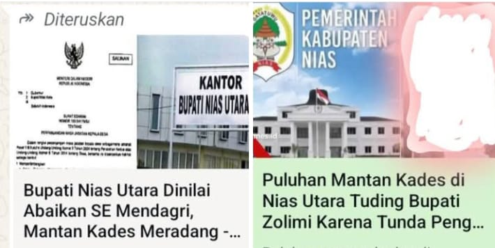 tentang Perpanjangan Masa Jabatan Kepala Desa di Kabupaten Nias Utara. Pada laman Facebook Kominfo Nias Utara menyampaikan dengan ini kami sampaikan bahwa isu dan pemberitaan itu tidak benar.