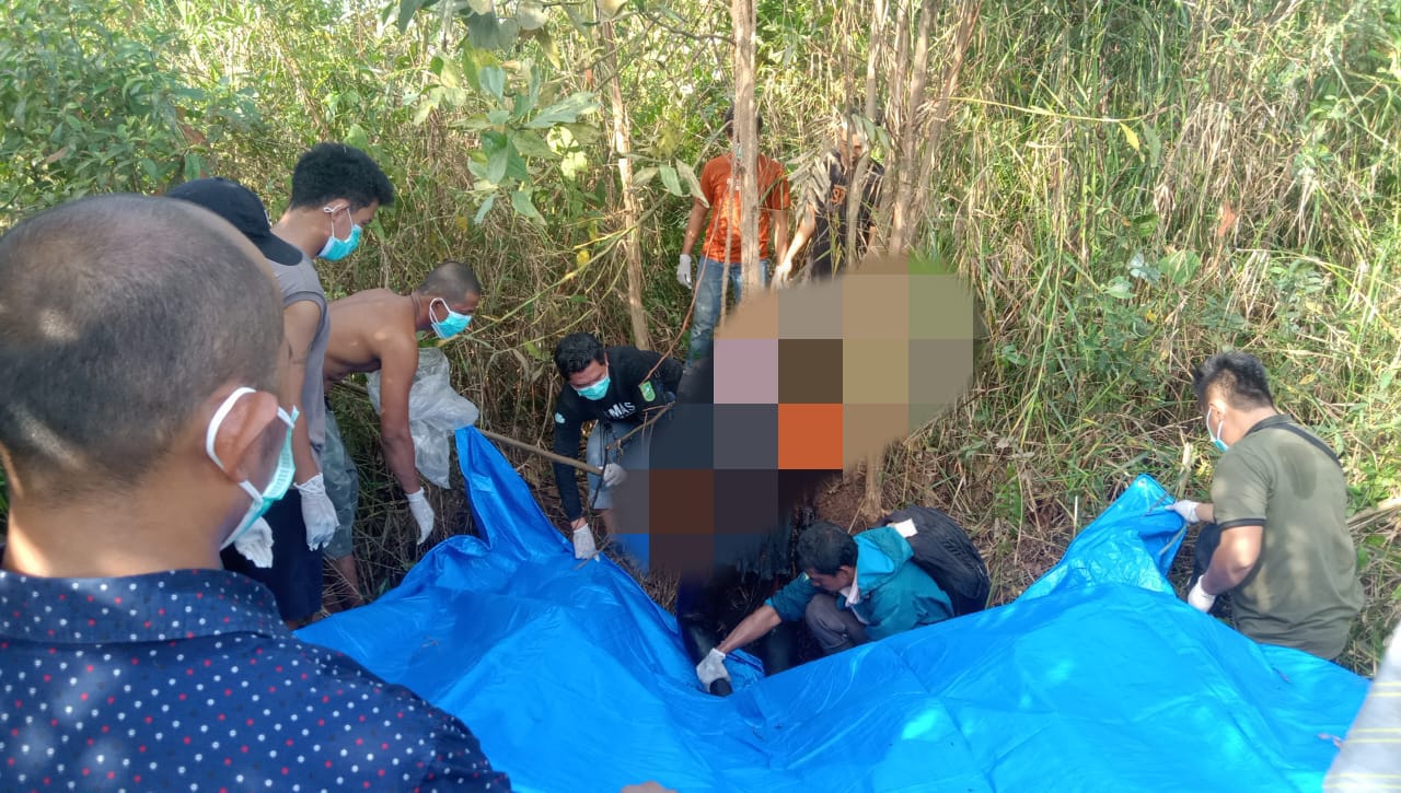 Penemuan mengerikan itu bermula dari aroma busuk yang tercium oleh seorang warga, Usuf Purba, saat menyemprot lahannya. Ia bersama temannya, Sormawati Damanik, mengikuti sumber bau hingga menemukan kenyataan mengerikan: sesosok tubuh mengenakan baju hitam menggantung kaku dengan tali di leher. Kondisi jenazah mengenaskan—kulit melepuh, tubuh membiru, dan wajah sulit dikenali.